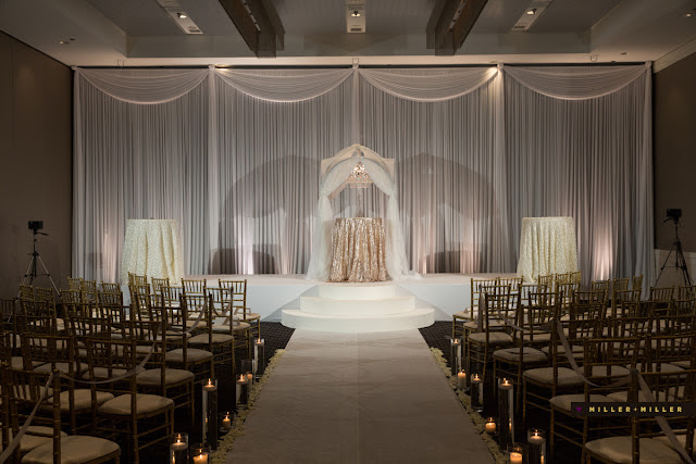 The aisle was lined with golden chiavari chairs, and glowing candlelight filled the room. The ceremony held extraordinary meaning for the two of us, because unbeknownst to our guests, my brother officiated the ceremony in a surprising change from groomsman to officiant mid-ceremony.